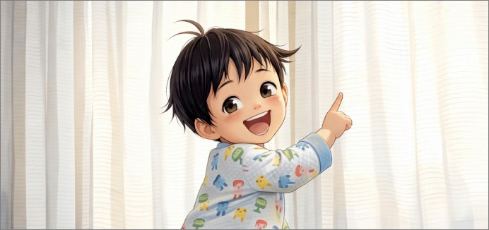 前回は父親の姿が見えなくなると大泣きし、泣き止むまで5分ほどかかった。ところが今回はというと、寝起きだったのにも関わらず母親が出かけても平気で、寝ぐせ頭のままご機嫌で祖父母相手に遊んでいた。